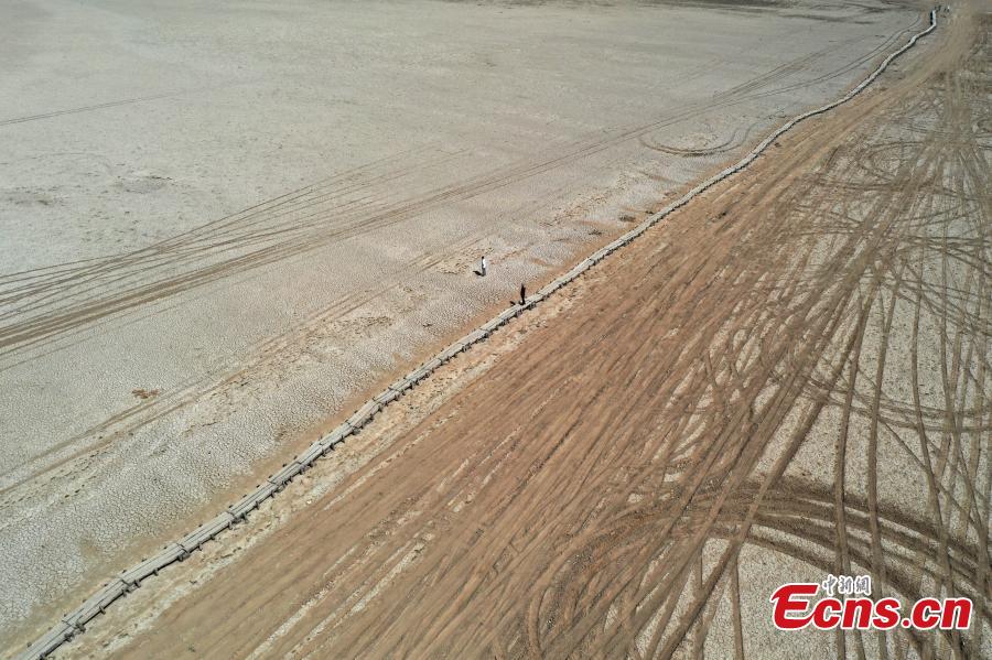 The 2,657-metre-long bridge built in Ming Dynasty (1368-1644) reappears as the water level continued to drop at Poyang Lake, Jiujiang city, east China's Jiangxi Province, Sept. 6, 2022. (Photo: China News Service/Liu Zhankun)