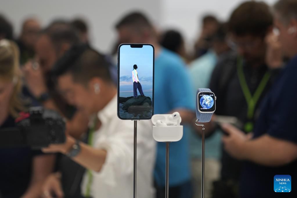 New Apple products are displayed in San Francisco Bay Area, California, the United States, Sept. 7, 2022. Apple on Wednesday announced new products during a product launch event held in the Steve Jobs Theater. (Xinhua)