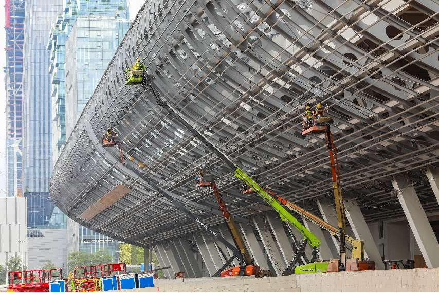 The China Import and Export Fair Complex (Phase IV) is under construction, Sept. 5, 2022. (Photo by Chen Zhiqiang/People's Daily Online)