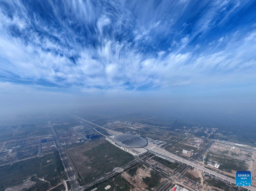 Aerial photo taken on Sept. 9, 2022 shows the Xiong'an Railway Station in Xiong'an New Area, north China's Hebei Province. (Xinhua/Zhu Xudong)