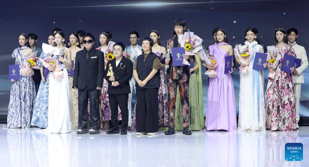 Photo taken on Sept. 12, 2022 shows a scene of the award ceremony at the closing show of China Fashion Week S/S 2023 in Beijing, capital of China. The event concluded here on Monday. (Xinhua/Chen Jianli)
