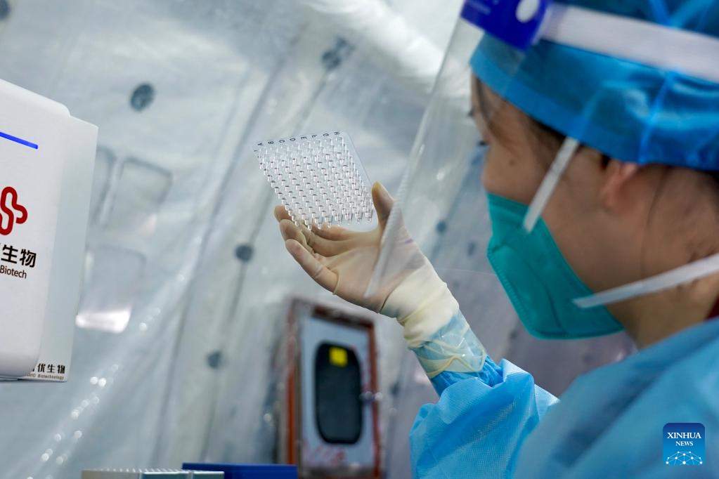 A medical worker works in an air-inflated testing lab in Chengdu, southwest China's Sichuan Province, Sept. 5, 2022. (Xinhua/Liu Qiong)