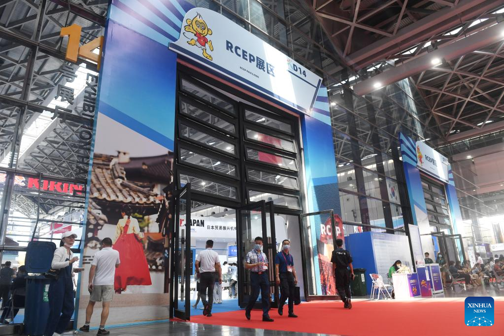 People visit the RCEP pavilions during the 19th China-ASEAN Expo in Nanning, south China's Guangxi Zhuang Autonomous Region, Sept. 18, 2022. The four-day expo themed "Sharing RCEP New Opportunities, Building a Version 3.0 China-ASEAN Free Trade Area," will last till Monday as this year marks the first year of implementation of the Regional Comprehensive Economic Partnership (RCEP) free trade agreement. (Xinhua/Zhou Hua)