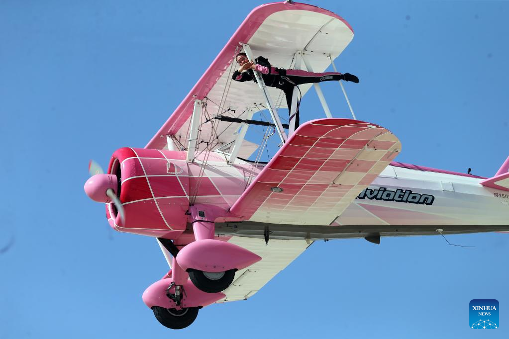 A wingwalker performs during the Sivrihisar Airshow 2022 in Sivrihisar district of Eskisehir in Trkiye, Sept. 17, 2022.