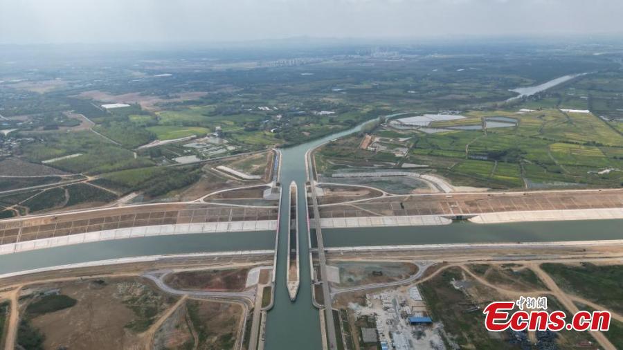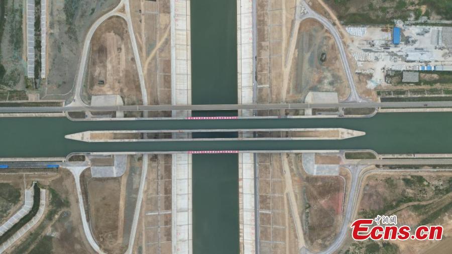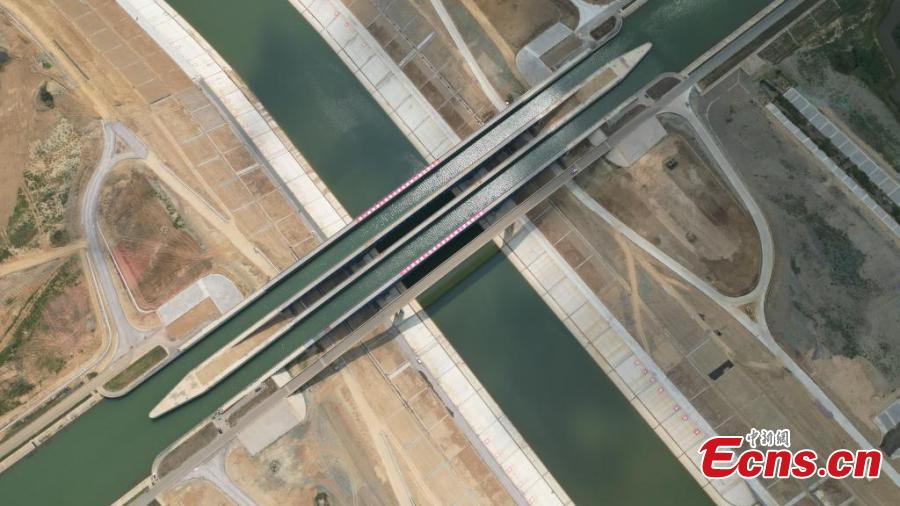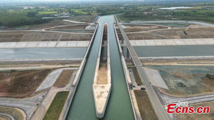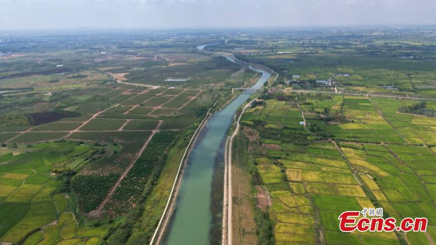Aerial view of the world's longest-span aqueduct on Pihe River's main channel in Feixi county, east China's Anhui Province, Sept. 18, 2022. (Photo: China News Service/Chen Jiale)