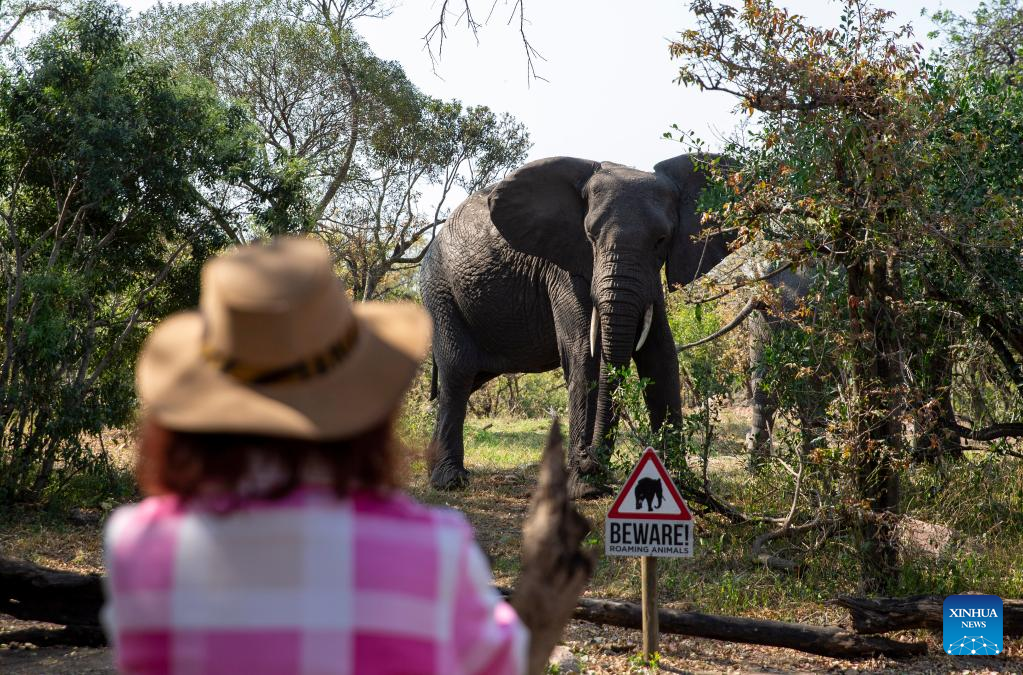 Photo taken on Sept. 17, 2022 shows an elephant at the Kruger National Park, Mpumalanga, South Africa. Kruger National Park is one of the largest game reserves in Africa. Covering an area of 19,485 square kilometers in northeastern South Africa, the park is a home to an impressive number of species. (Xinhua/Zhang Yudong)