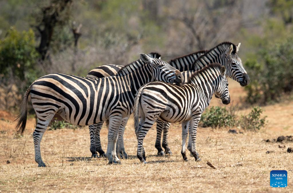 Photo taken on Sept. 17, 2022 shows zebras at the Kruger National Park, Mpumalanga, South Africa. Kruger National Park is one of the largest game reserves in Africa. Covering an area of 19,485 square kilometers in northeastern South Africa, the park is a home to an impressive number of species. (Xinhua/Zhang Yudong)
