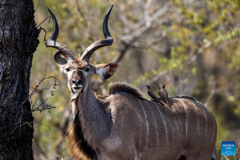 Photo taken on Sept. 17, 2022 shows a kudu at the Kruger National Park, Mpumalanga, South Africa. Kruger National Park is one of the largest game reserves in Africa. Covering an area of 19,485 square kilometers in northeastern South Africa, the park is a home to an impressive number of species. (Xinhua/Zhang Yudong)