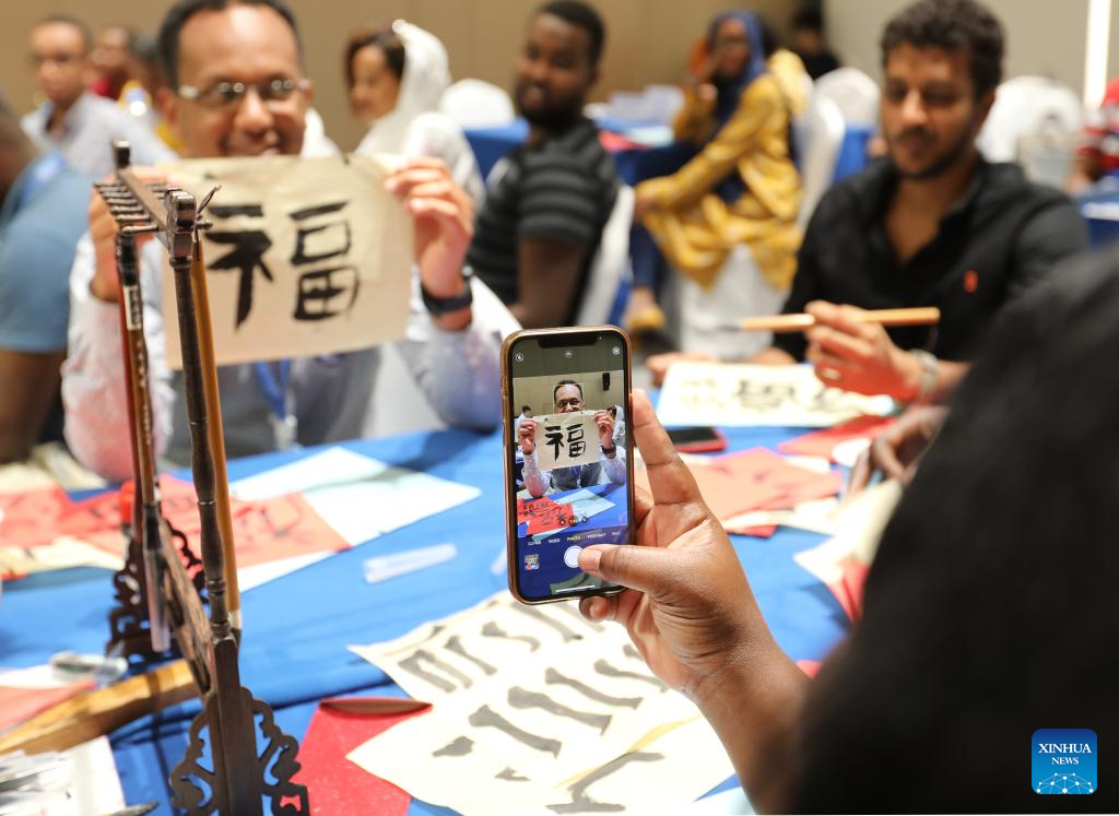 Trainees learn Chinese calligraphy during a Chinese culture program in Djibouti City, capital of Djibouti on Sept. 18, 2022.