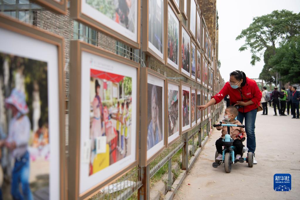 A woman and her kid visit the Pingyao International Photography Festival in Pingyao County of Jinzhong, north China's Shanxi Province, Sept. 19, 2022. The 22nd Pingyao International Photography Festival kicked off here on Monday, displaying works of over 1,200 photographers from home and abroad. This event will last until Sept. 25. (Xinhua/Yang Chenguang)