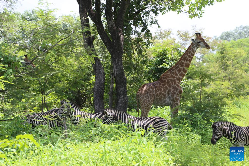 Giraffes and zebras are pictured at a safari park in the Saloum Delta region of Senegal, Sept. 16, 2022.