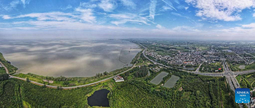 Aerial photo taken on Sept. 6, 2022 shows a view of a wetland park around the Chaohu Lake in Hefei City, east China's Anhui Province. As the fifth-largest freshwater lake in China, Chaohu Lake is known as the "kidney" of the Yangtze River.