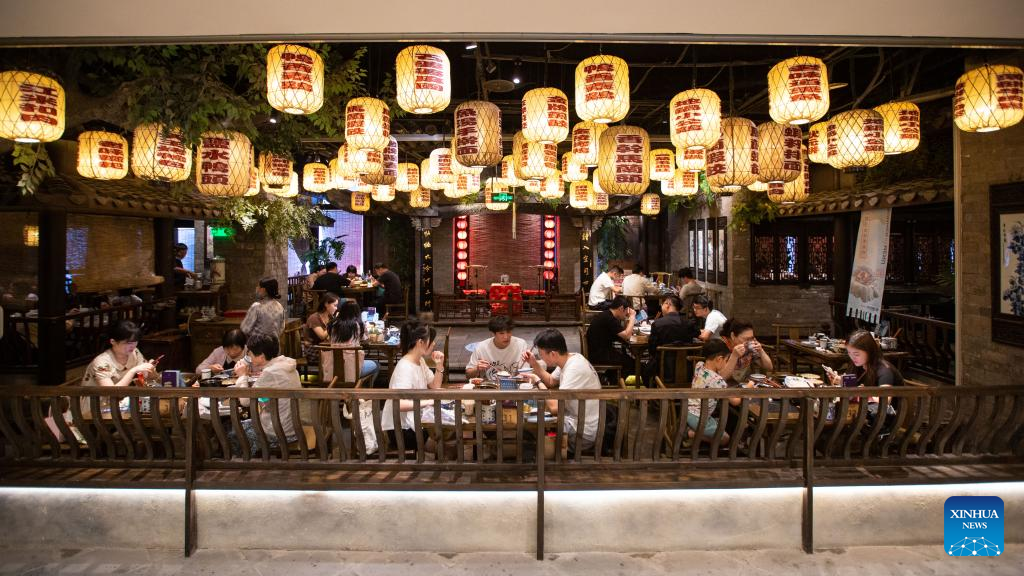 People dine in a restaurant during the Mid-Autumn Festival holiday in Nanjing, east China's Jiangsu Province, Sept. 11, 2022.(Photo by Su Yang/Xinhua)