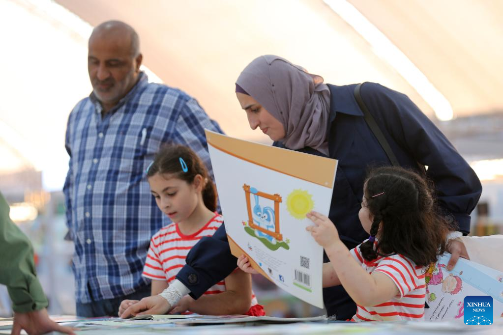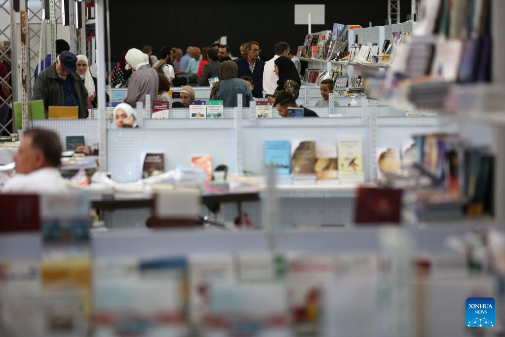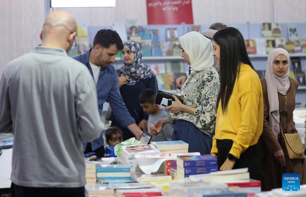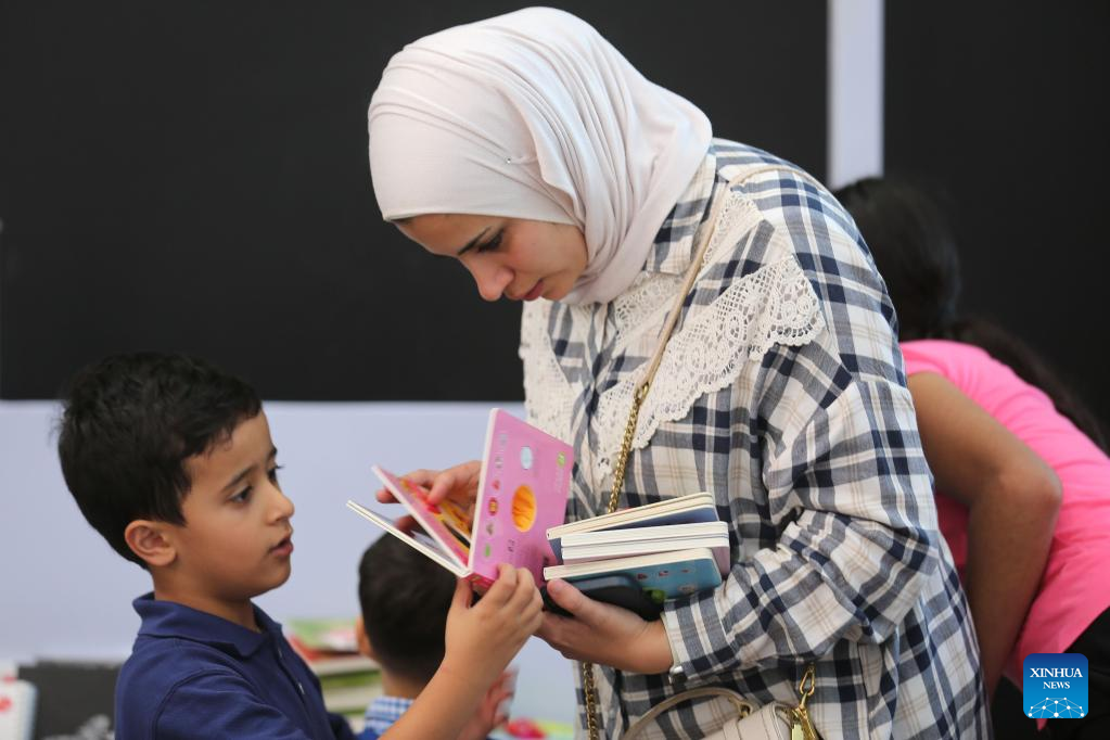 Palestinians visit the 12th edition of Palestine International Book Fair in Surda town, near the West Bank city of Ramallah, on Sept. 22, 2022. (Photo by Ayman Nobani/Xinhua)