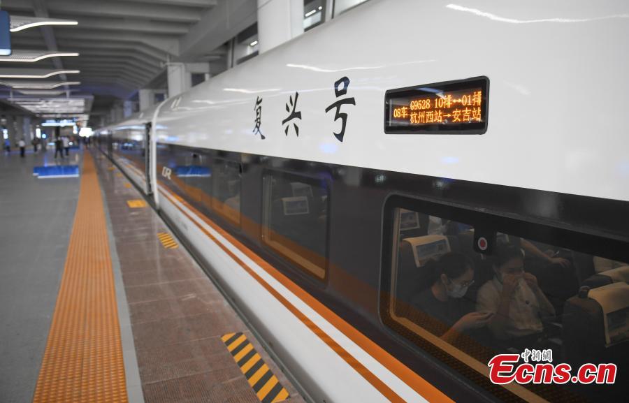The train G9528 departs from Hangzhou West Railway Station, east China's Zhejiang Province, Sept. 22, 2022. (Photo: China News Service/Wang Gang)