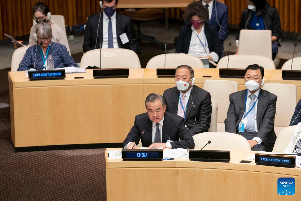 UNITED NATIONS, Sept. 21 (Xinhua) -- Chinese President Xi Jinping's special representative Wang Yi, also Chinese state councilor and foreign minister, on Wednesday attended a high-level meeting on climate change at the United Nations (UN) headquarters here and delivered a speech.