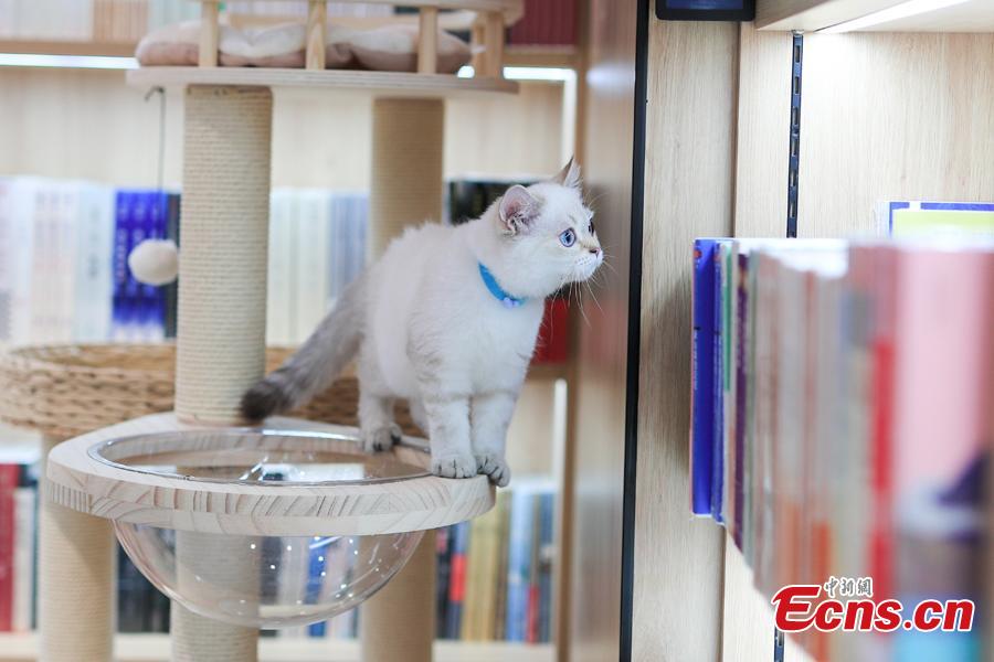 A cat makes its debut at a pet-themed Xinhua Bookstore in Beijing on Sept. 25, 2022. (Photo: China News Service/Jia Tianyong)