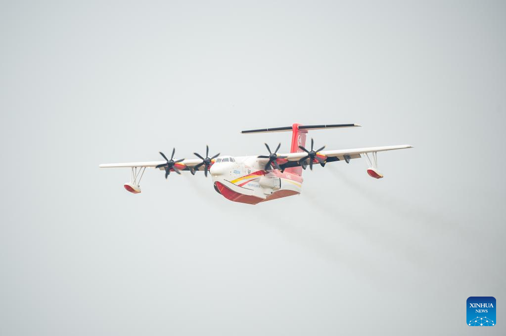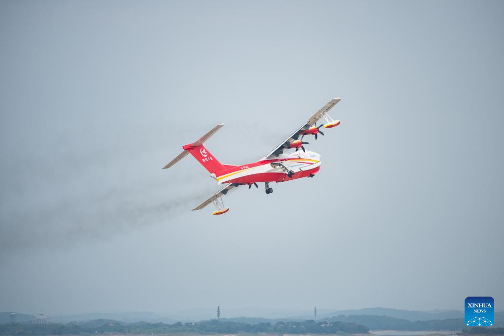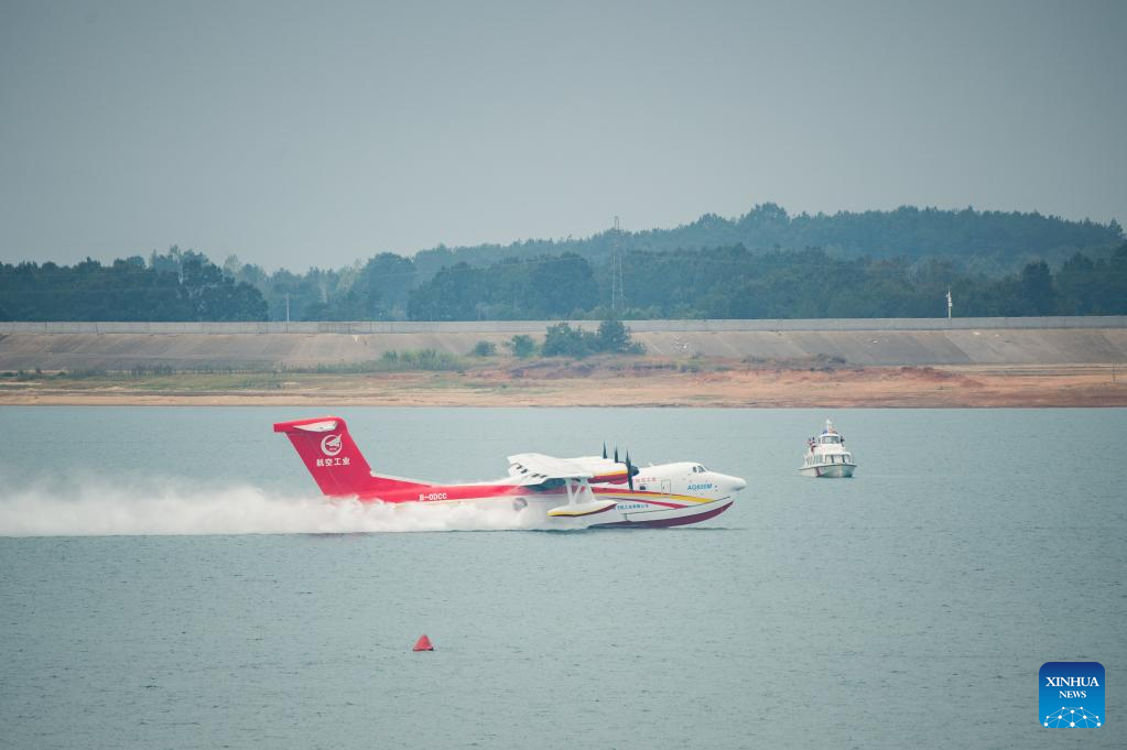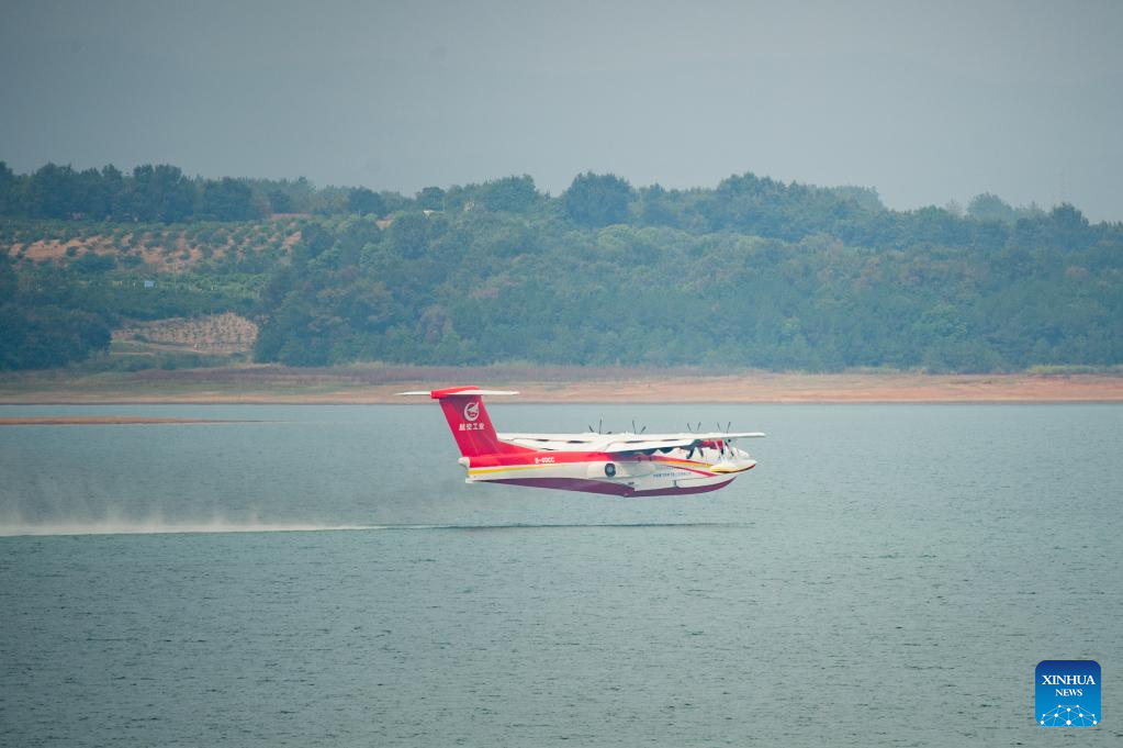 It consecutively conducted the flight tests of aerial water dropping, landing on a nearby reservoir and taxiing scooping, taking off again and dropping water over the preset area, and then successfully landing at the reservoir at 10:16 a.m., said the AVIC.