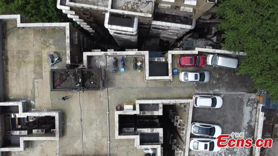 Cars are parked at a 10-story residential building's rooftop in Chongqing, Sept. 27, 2022. The rooftop parking lot eases parking problem in the mountain city. (Photo: China News Service/Xiao Jiangchuan)
