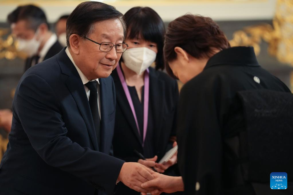 TOKYO, Sept. 28 (Xinhua) -- Wan Gang, representative of the Chinese government and vice chairman of the National Committee of the Chinese People's Political Consultative Conference, attended the state funeral of former Japanese Prime Minister Shinzo Abe and the appreciation ceremony hosted by the Japanese government and Abe's family in Tokyo on Tuesday.