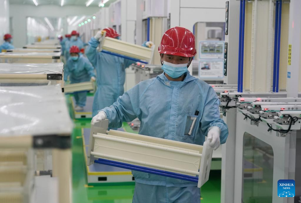 Workers take part in a training course at a workshop of LONGi Solar Technology (Xixian New Area) Co., Ltd. in Xixian New Area, northwest China's Shaanxi Province, Sept. 28, 2022.