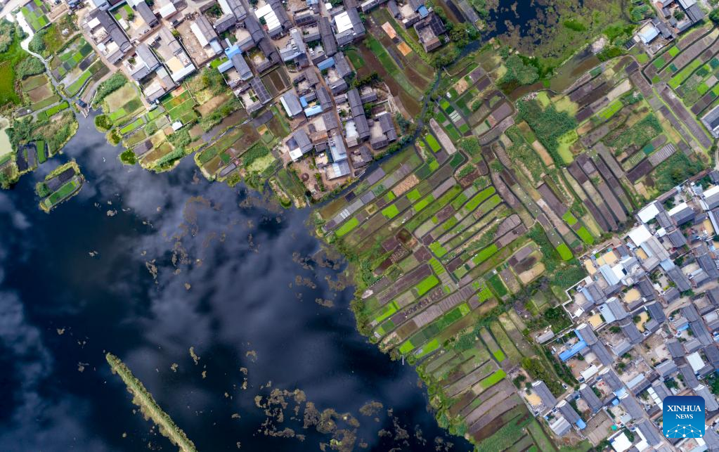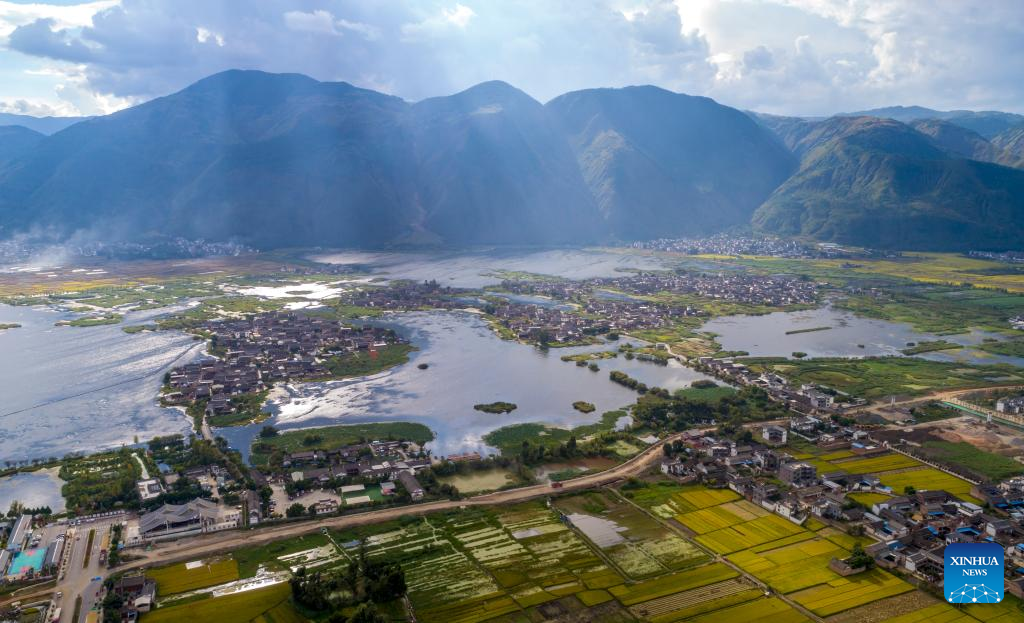 Aerial photo taken on Sept. 28, 2022 shows the scenery of Eryuan West Lake in Eryuan County of Dali Bai Autonomous Prefecture, southwest China's Yunnan Province. (Xinhua/Chen Xinbo)
