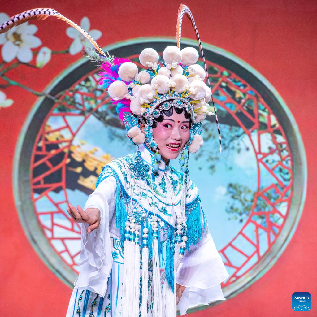 Artists perform Chuanju (Sichuan opera) in Ciqikou ancient town, southwest China's Chongqing Municipality, Oct. 2, 2022. During the National Day holiday, the scenic area Ciqikou has conducted various activities themed with traditional Chinese culture to attract tourists. (Xinhua/Tang Yi)