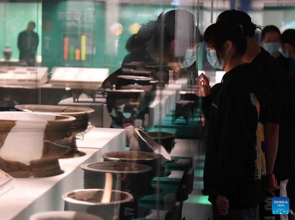 People visit a museum for displaying cultural relics of Shang Dynasty (1600-1046 B.C.) in Zhengzhou, central China's Henan Province, Oct. 4, 2022. (Xinhua/Li Jianan)