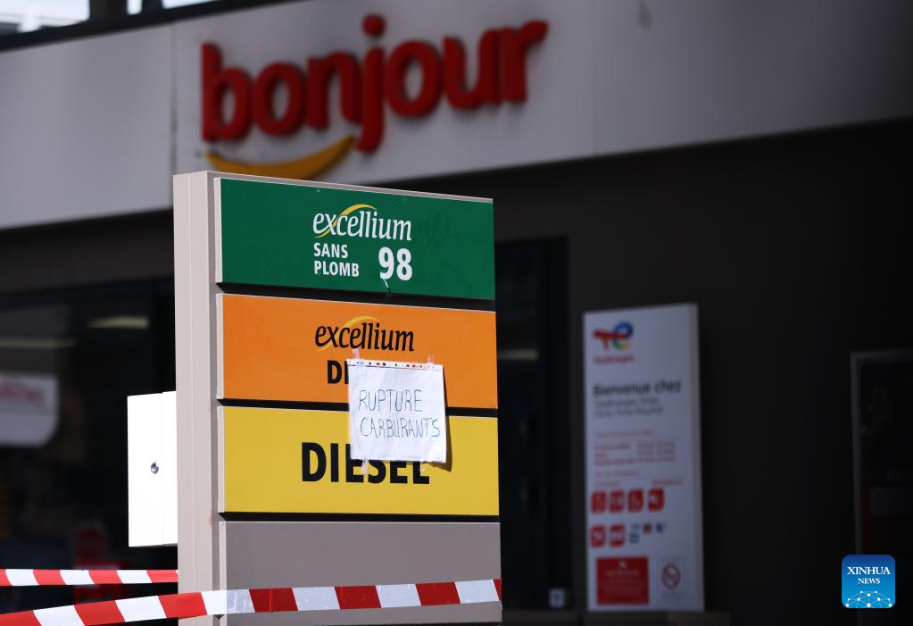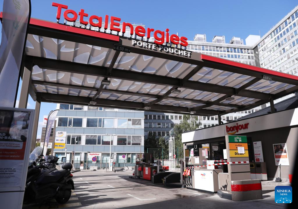 A temporarily closed Total Energies gas station is seen in Paris, France, Oct. 6, 2022. (Xinhua/Gao Jing)