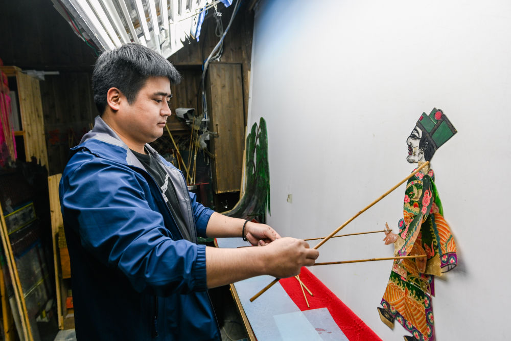 Post-90s inheritor wows audience with 4D Chinese shadow puppet show