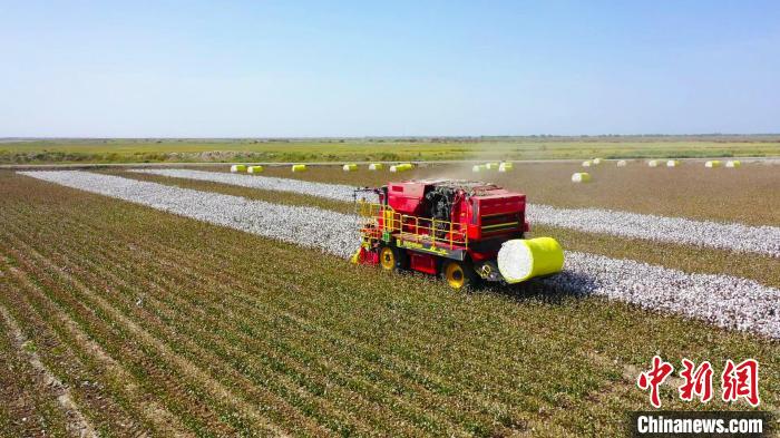 "This year, we are using machines to pick and bundle up the cotton. It takes 5 to 6 minutes for a cotton picker to make a bale of cotton weighing about 850 kilograms, which is the total weight of cotton picked by 10 workers in a whole day," said Guo Shixue, head of the technology department of a local cotton planting cooperative in Yuli county.