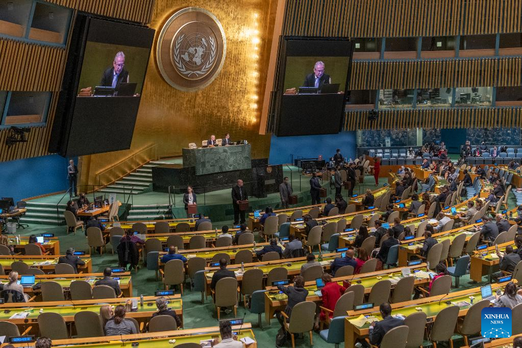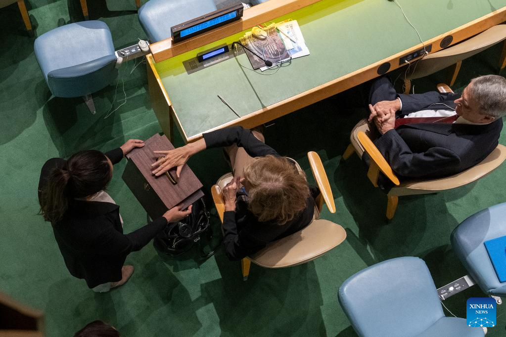 Photo taken on Oct. 11, 2022 shows a plenary meeting of the UN General Assembly held to elect members of the Human Rights Council at the UN headquarters in New York. The UN General Assembly on Tuesday elected 14 states into the Human Rights Council to succeed outgoing members. (Cia Pak/UN Photo/Handout via Xinhua)