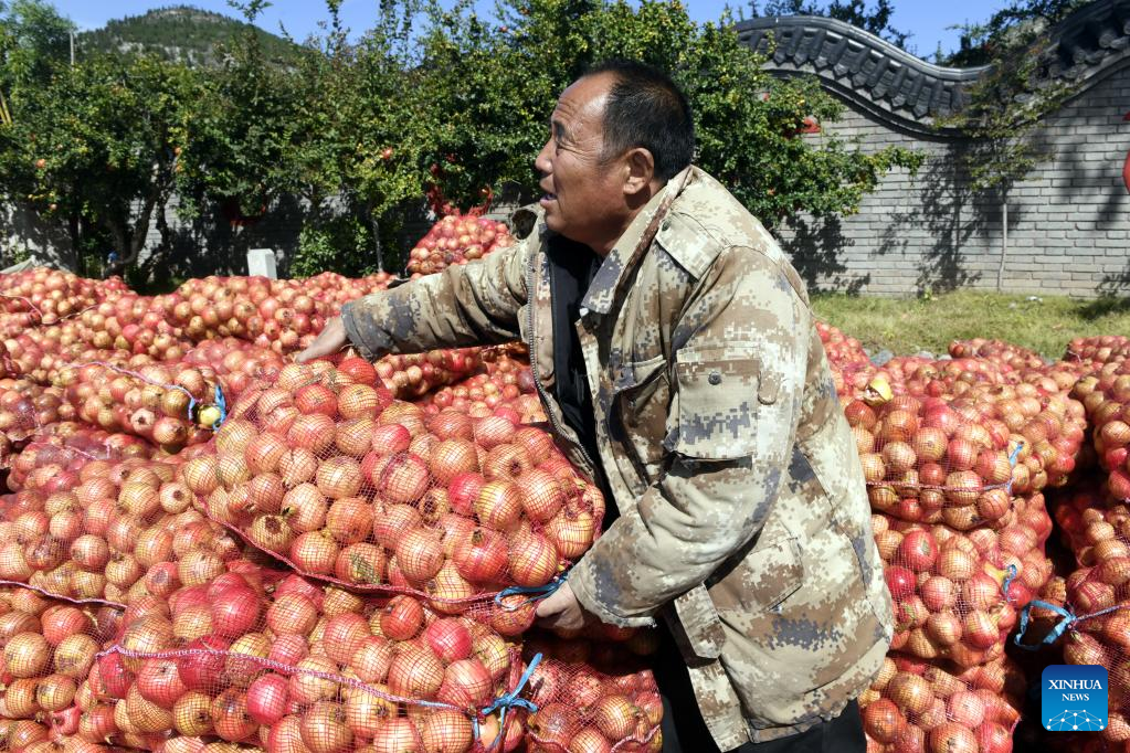 Villagers busy harvesting and trading pomegranates in E China's Shandong (2)
