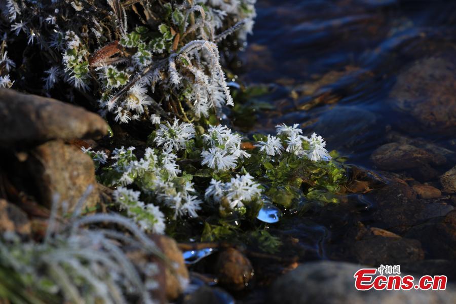 Frost flowers "bloom" along a river in Chaoer Forest, north China's Inner Mongolia Autonomous Region as temperatures plummet recently. (Photo: China News Service/He Kanghong)