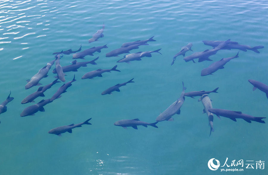 Photo captures the “herring squad”in Fuxian Lake in Yuxi City, southwest China’s Yunnan Province (Photo/Liu Guineng)