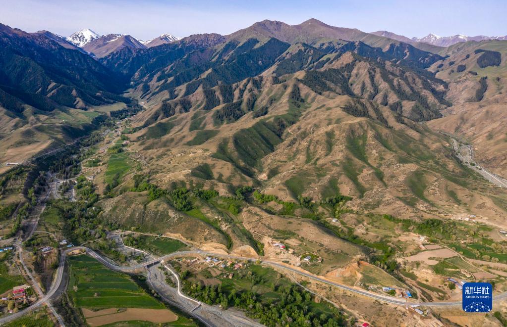 Aerial photo taken on May 22, 2022, shows a view of a mountain road in Jimusar county, northwest China's Xinjiang Uygur Autonomous Region. (Xinhua/Hu Huhu)