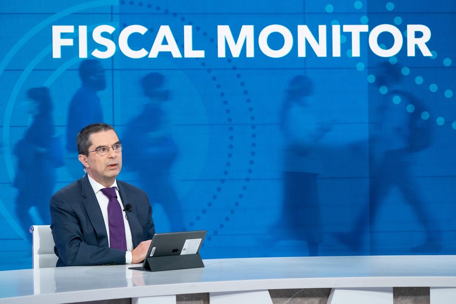International Monetary Fund (IMF) Fiscal Affairs Department Director Vitor Gaspar participates in the Fiscal Monitor press conference during the 2021 annual meetings in Washington, D.C., the United States, on Oct. 13, 2021. (IMF Photo/Allison Shelley/Handout via Xinhua)
