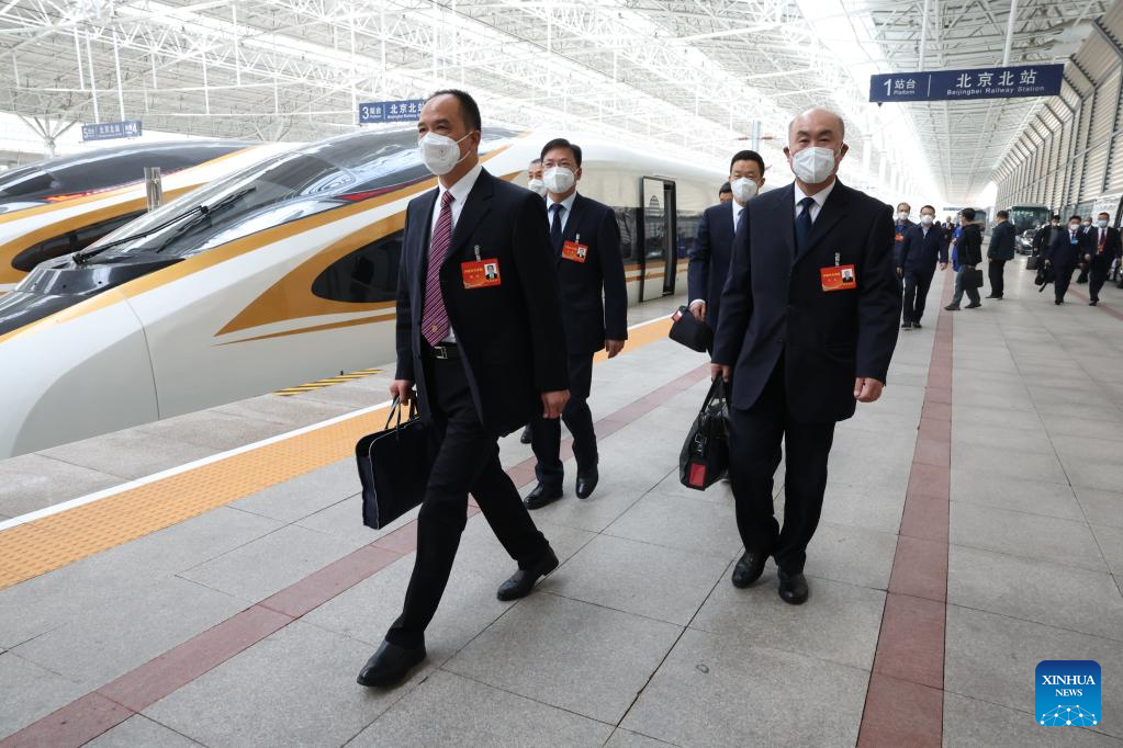 Delegates from Inner Mongolia Autonomous Region to the 20th National Congress of the Communist Party of China (CPC) arrive in Beijing, capital of China, Oct. 13, 2022. (Xinhua/Zhang Yuwei)