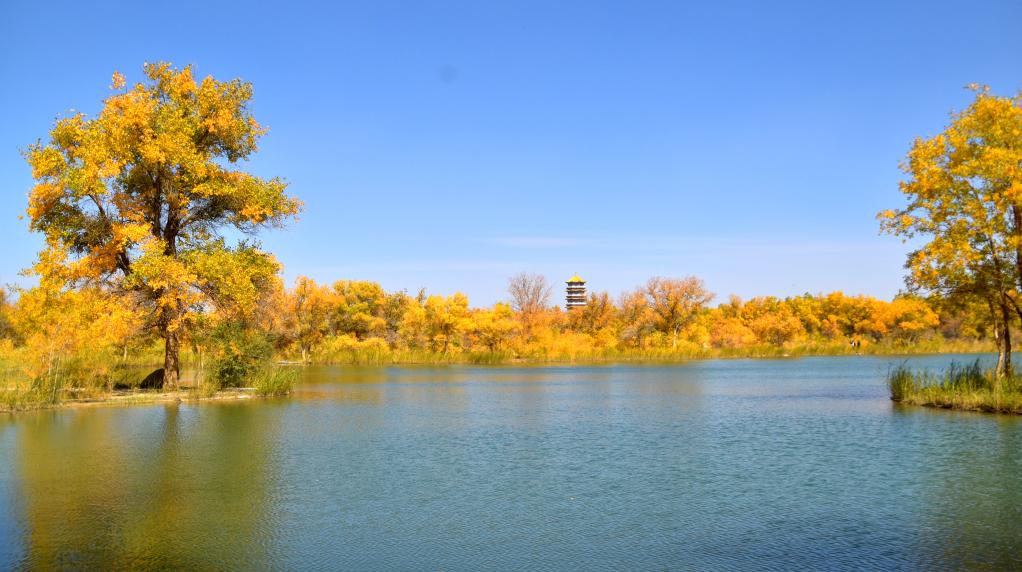 Photo taken on Oct. 7, 2022 shows the autumn scenery of the populus euphratica forest in Jinta County, northwest China's Gansu Province. (Photo by Wan Zongping/Xinhua)