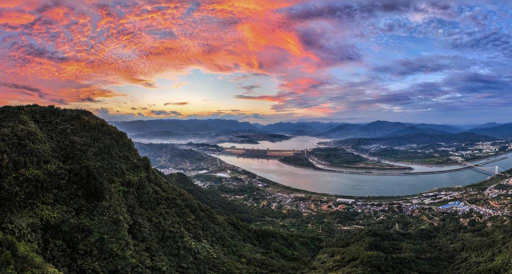 Aerial panoramic photo taken on Sept. 29, 2022 shows the scenery of the Three Gorges project in Yichang City, central China's Hubei Province. (Photo by Wang Gang/Xinhua)
