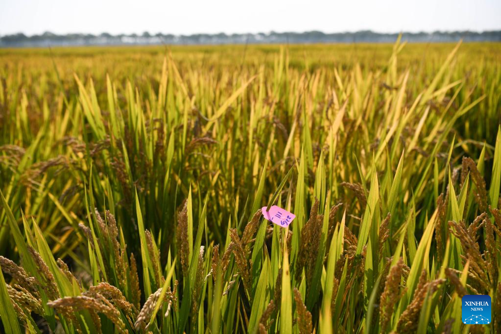 Photo taken on Oct. 15, 2022 shows a demonstration test paddy in Baohe District of Hefei, east China's Anhui Province.