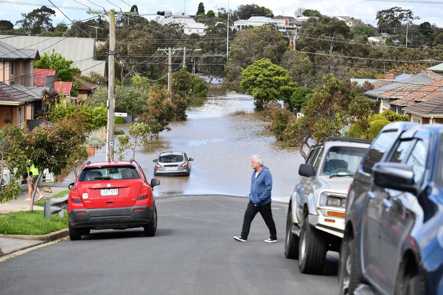 Photo taken on Oct. 14, 2022, shows a flooded area in Victoria, Australia. (Photo by Bai Xue/Xinhua)