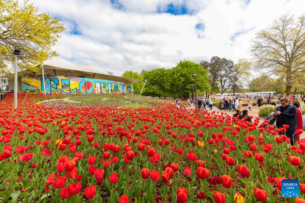 Photo taken on Oct. 16, 2022 shows people attending the Floriade flower festival at the Commonwealth Park in Canberra, Australia. Floriade, one of the Australian Capital Territory's signature events, was held here from Sept. 17 to Oct. 16. (Photo by Chu Chen/Xinhua)