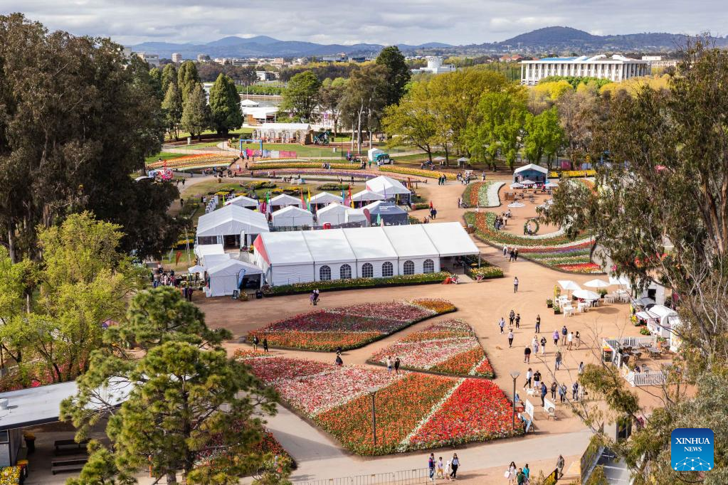 Photo taken on Oct. 16, 2022 shows a view of the Floriade flower festival at the Commonwealth Park in Canberra, Australia. Floriade, one of the Australian Capital Territory's signature events, was held here from Sept. 17 to Oct. 16. (Photo by Chu Chen/Xinhua)