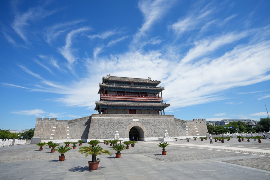 Photo taken on Aug. 16, 2022 shows the scene of Yongdingmen (Gate of Perpetual Peace) in Beijing, capital of China. (Xinhua/Ju Huanzong)