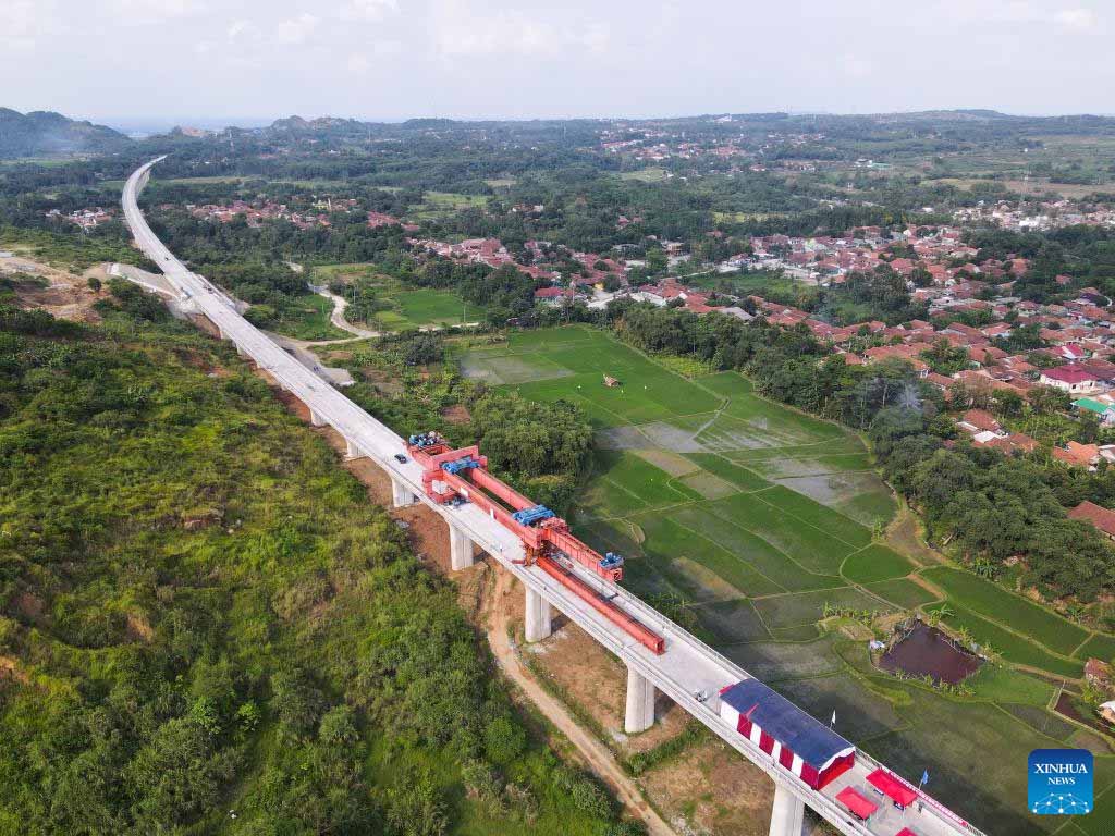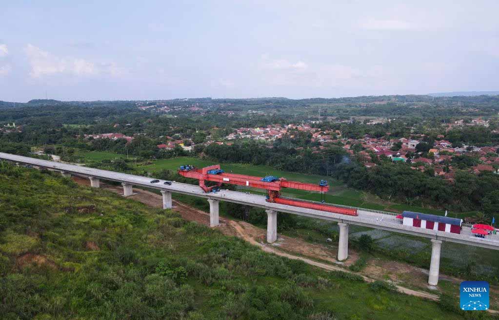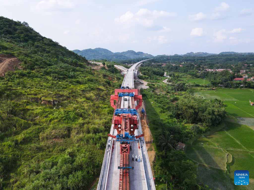 JAKARTA, Oct. 16 (Xinhua) -- The erection task of all box girders along the Jakarta-Bandung High Speed Railway (HSR) was completed Sunday, which means the track-laying channel has fully opened, laying a solid foundation for the completion of the HSR and its opening to traffic in June 2023.