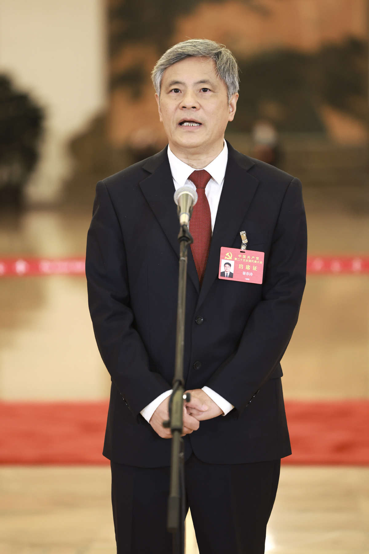 Xie Chuntao, a delegate to the 20th National Congress of the Communist Party of China, speaks during an interview at the Great Hall of the People in Beijing on Oct 16, 2022. [Photo/Xinhua]