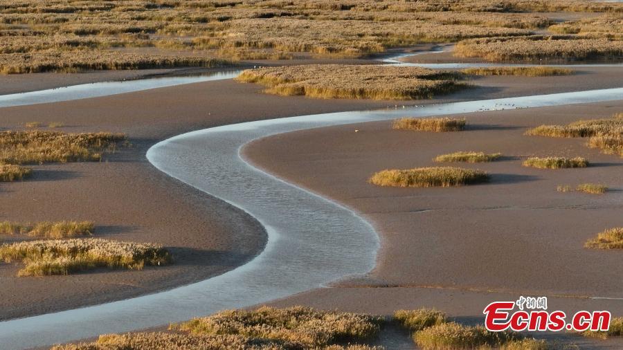 Autumn brings awesome scenery to the Yellow River estuary where the Yellow River, China's second-longest river, joins the Bohai Sea in Dongying, east China's Shandong Province, Oct. 17, 2022. (Photo: China News Service/Yang Bin)