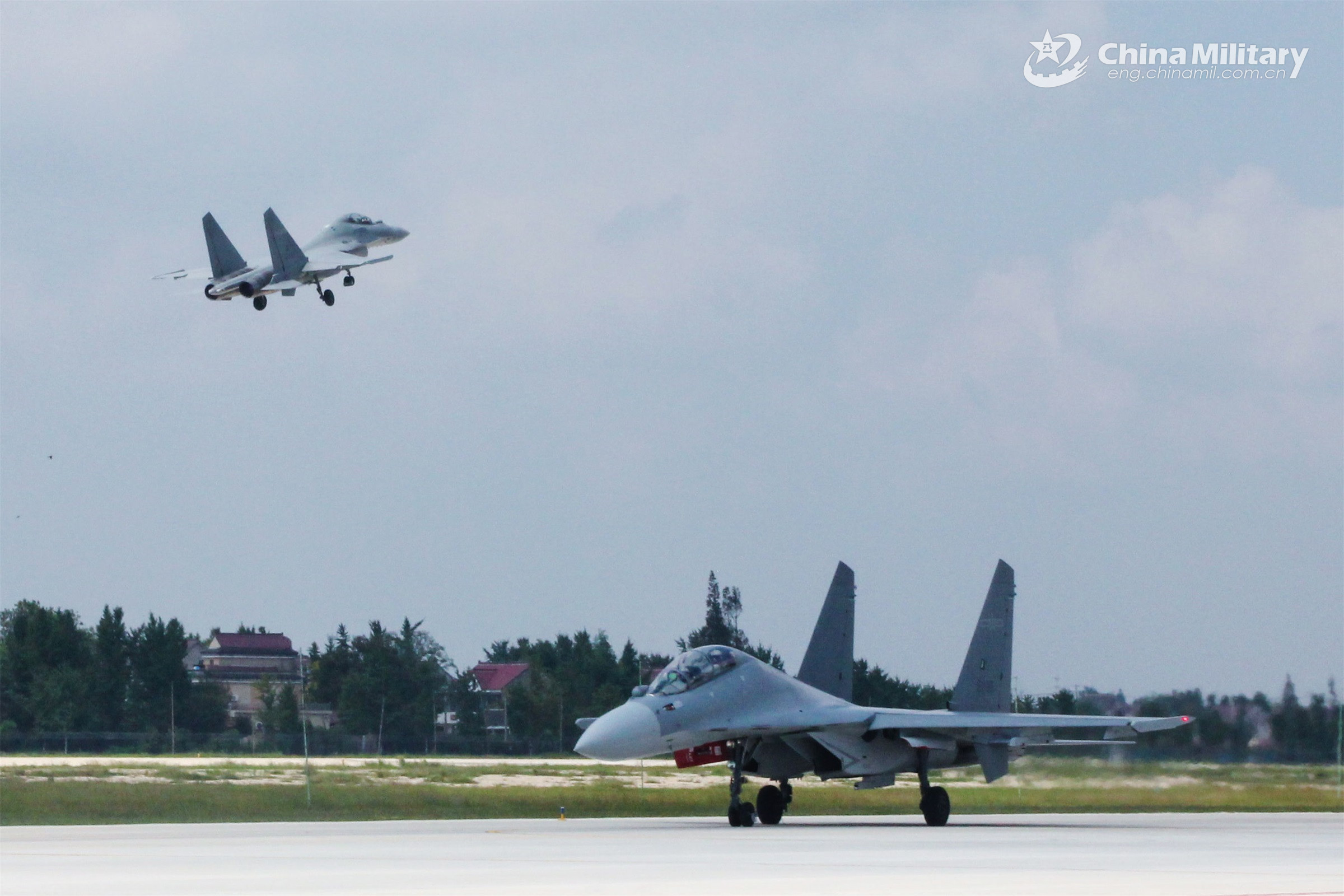Fighter jets attached to an aviation brigade under the PLA Eastern Theater Command take turns to take off from the runway during a flight training exercise on September 12, 2022. (eng.chinamil.com.cn/Photo by Zhu Yunlong)