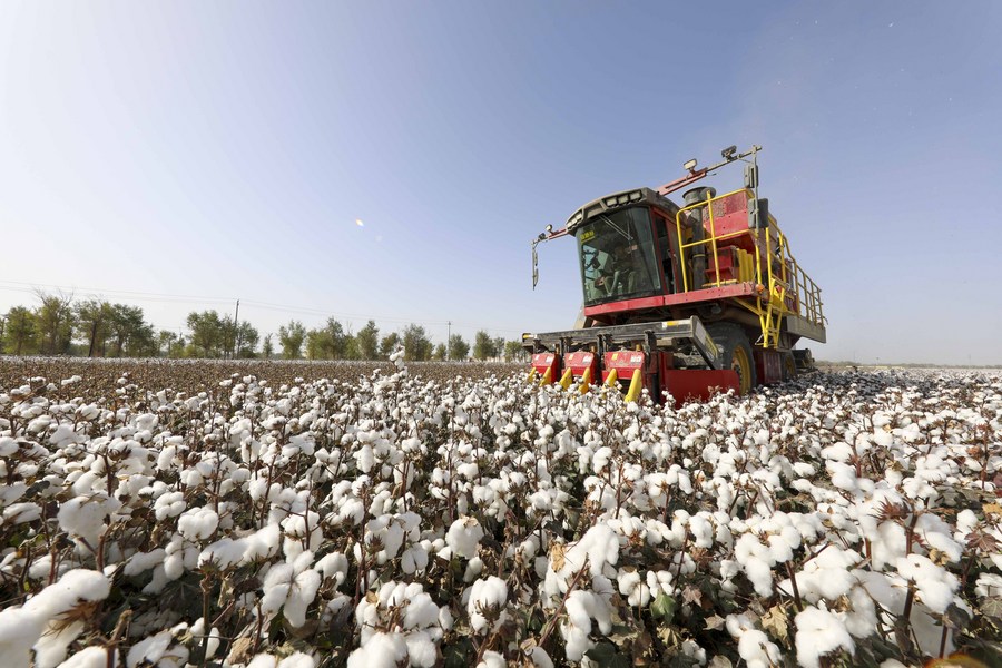 URUMQI, Oct. 21 (Xinhua) -- Xinjiang has entered its large-scale cotton harvest period this year, with machines expected to do over 80 percent of the picking work, local authorities said. Domestically-made machinery cotton pickers have played an important role in enhancing the efficiency of cotton picking.